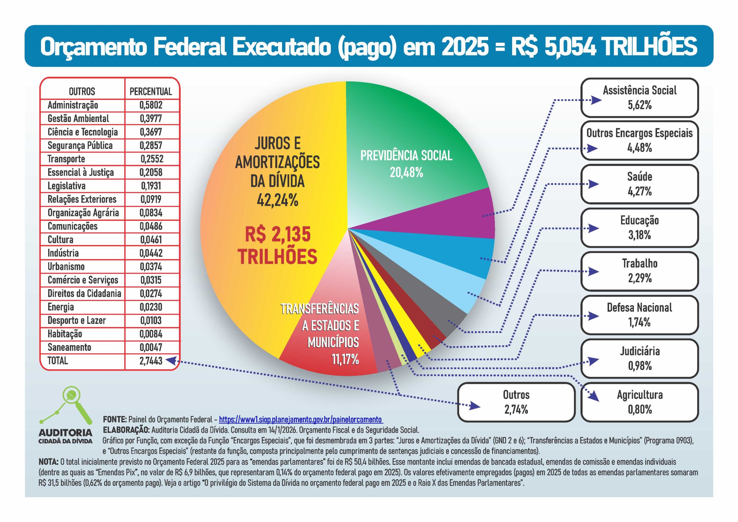 2 TRILHÕES, 135 BILHÕES, 85 MILHÕES, 643 MIL, 781 REAIS = 42,24% DOS GASTOSquanto “devemos”