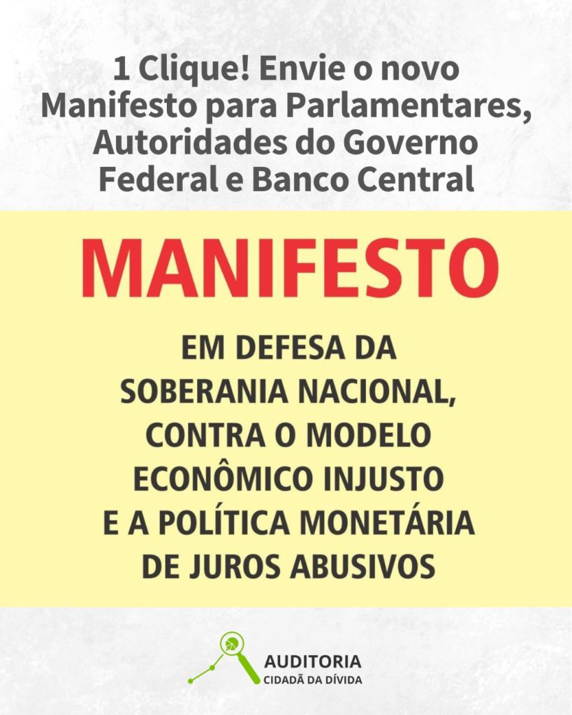 O Manifesto de iniciativa da Auditoria Cidadã da Dívida (ACD) e do observatório de Finanças da CBJP em defesa da soberania nacional, contra o modelo econômico injusto e a política monetária de juros abusivos.