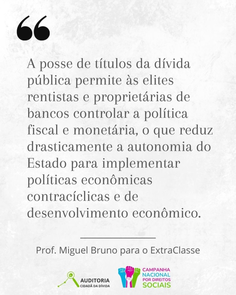 A posse de títulos da dívida pública permite às elites rentistas e proprietárias de bancos controlar a política fiscal e monetária, diz professor Miguel Bruno