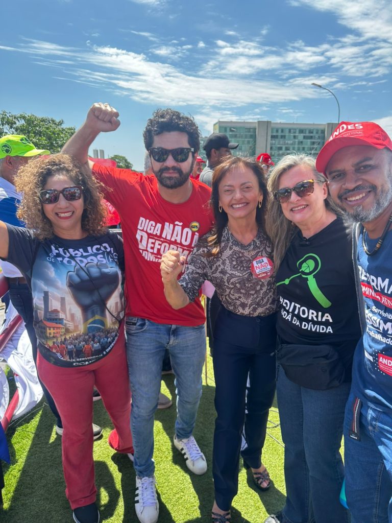 Durante a mobilização, a equipe da ACD encontrou-se com diversos parlamentares e lideranças, entre eles os deputados Glauber Braga, Alice Portugal e Erika Kokay, que participaram ativamente do ato em defesa dos direitos sociais e dos serviços públicos.