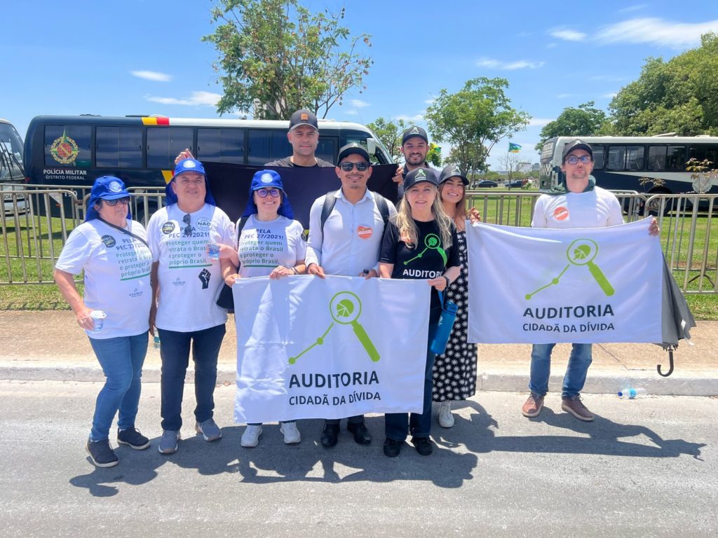 “NÃO DEIXAREMOS ESSE CONGRESSO DESTRUIR A ESTRUTURA DO ESTADO BRASILEIRO! O rombo está no Sistema da Dívida e não na manutenção dos serviços públicos que a população necessita! #auditoriajá”, disse Fattorelli.