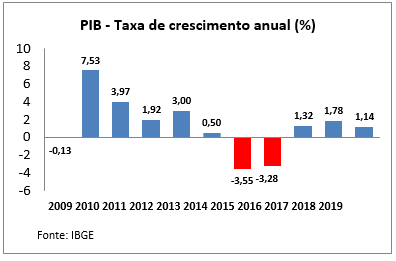Em 2020 o PIB caiu mais ainda, pois além de todos os nocivos efeitos da pandemia sobre a economia, o volume das “Operações Compromissadas” chegou a superar R$1,7 trilhão no mês de setembro! Esse abuso das “compromissadas” está aprofundando a crise econômica, pois a moeda que deveria estar nos bancos, disponível para empresas e pessoas a juros baixos, fica depositada no Banco Central rendendo juros somente aos bancos.