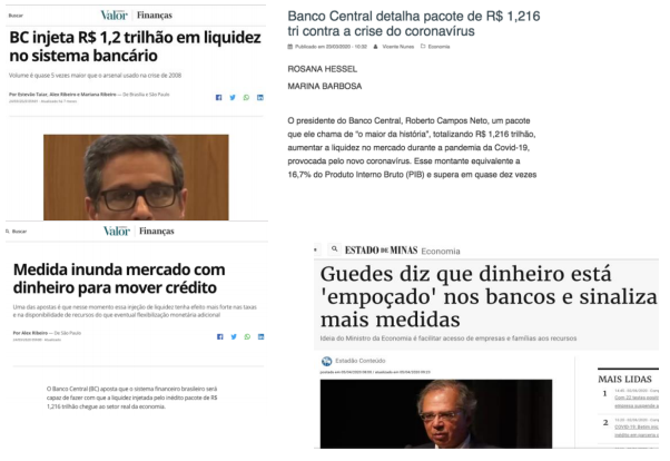 Os documentos que embasaram a injeção de R$1,2 trilhão nos bancos a partir de março/2020, constam no site do Banco Central, detalhado em relatório do próprio Banco Central <https://www.bcb.gov.br/content/publicacoes/ref/202004/RELESTAB202004-secao2_2.pdf>, e a operação fora amplamente noticiada.