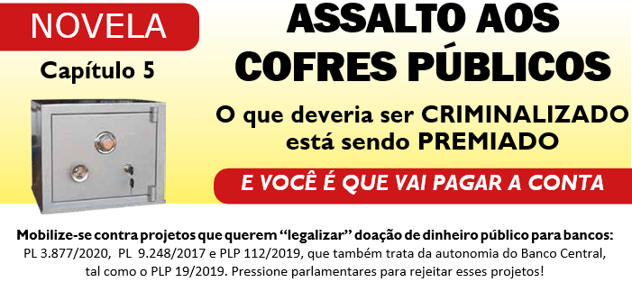 - Qual a justificativa para a criação de obrigação onerosa direcionada a doar dinheiro público para bancos, enquanto faltam recursos para o atendimento de urgentes necessidades sociais? Além do rombo ilegal ao orçamento público no valor de R$ 1 trilhão nos últimos 10 anos, essa remuneração gera falsa escassez de moeda na economia e provoca aumento brutal das taxas de juros de mercado, prejudicando toda a economia brasileira, além de fabricar a crise que enfrentamos desde 2014! Só bancos lucram!