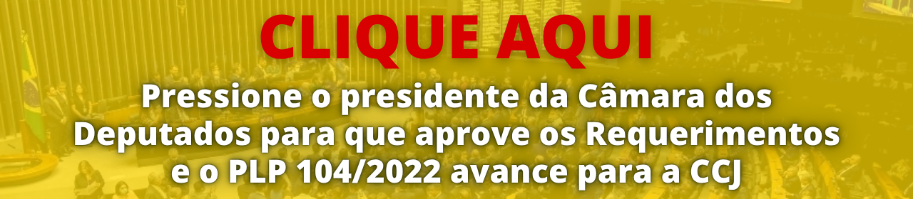 Clique na imagem abaixo pressione o presidente da Câmara dos Deputados, Deputado Federal Hugo Motta, para que aprove os Requerimentos 1527/2026 e 1528/2026, para que o PLP 104/2022 avance imediatamente para a Comissão de Constituição e Justiça.
