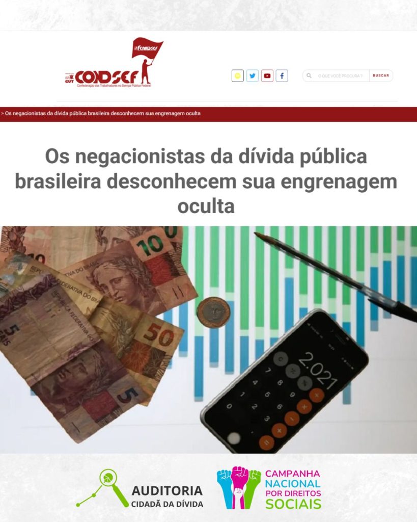A Condsef republicou, nesta semana, artigo do renomado economista e professor Dr. Miguel Bruno, veiculado inicialmente no Extra Classe, intitulado “Os negacionistas da dívida pública brasileira desconhecem sua engrenagem oculta”, em que defende os argumentos da Auditoria Cidadã da Dívida.