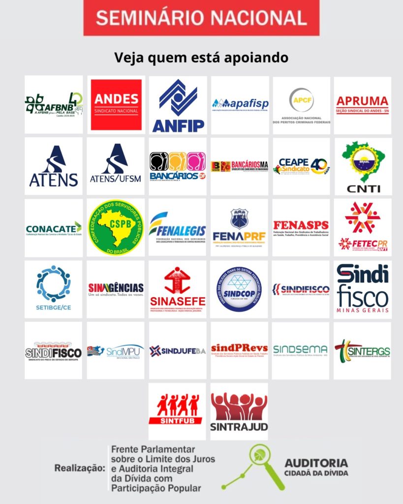 Confira as entidades que já estão apoiando o seminário sobre Financeirização e o Sistema da Dívida