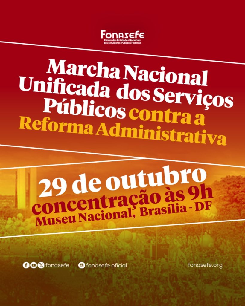 29 de outubro é dia de Marcha Nacional do Serviço Público contra a Reforma Administrativa!