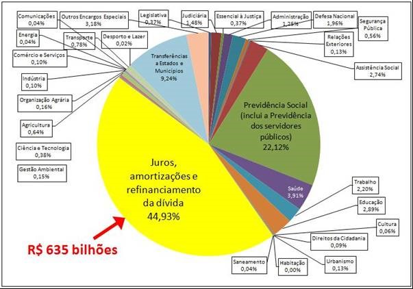 Em 2010, os pagamentos de juros e amortizações da Dívida Interna e Externa consumiram 45% dos recursos do Orçamento Geral da União. Essa prática recorrente tem subtraído recursos que deveriam se destinar ao atendimento das necessidades sociais prioritárias da sociedade, o que caracteriza desrespeito a fundamentos constitucionais da República Federativa do Brasil: a soberania (Art. 1º, I) e a dignidade da pessoa humana (art. 1º, III).