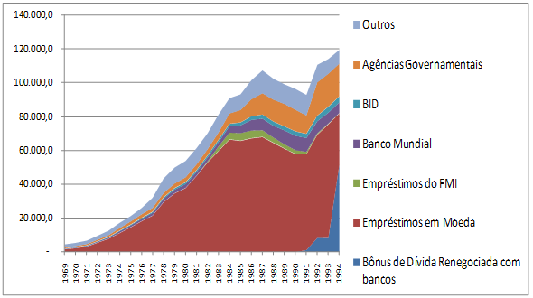 [60] Cruz. Paulo Davidoff. Dívida Externa e Política Econômica. Instituto de Economia da UNICAMP, 1999, pág. 129