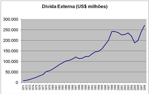 [119] O valor de US$ 198 bilhões não considera os empréstimos intercompanhias. A Dívida Externa Total em 31/12/2009 alcançou a cifra de US$ 282 bilhões.
