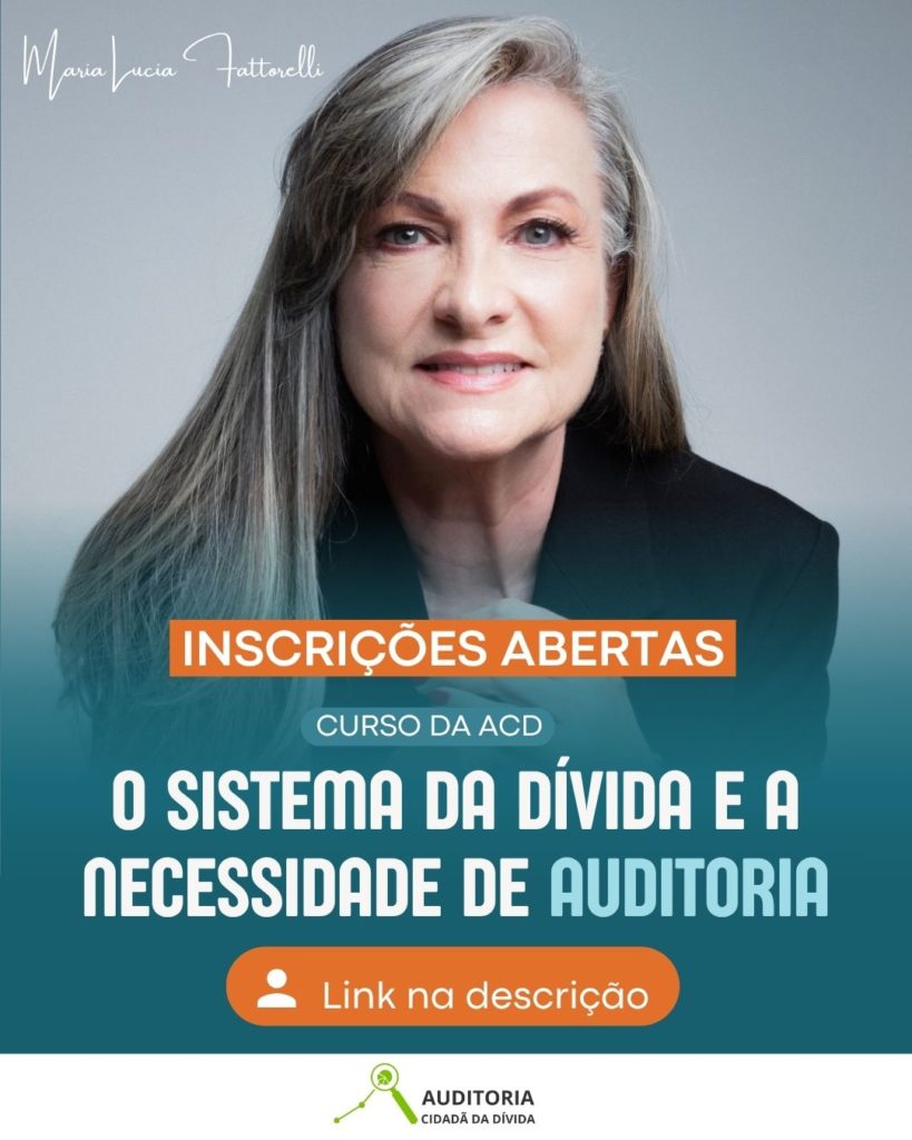 📢 Inscrições abertas! A nova turma do curso “O Sistema da Dívida no Brasil e a Necessidade de Auditoria Integral” está pronta para te receber! 🌟 Essa é a oportunidade perfeita para aprofundar seus conhecimentos e contribuir com a mobilização social em defesa da transparência e da justiça. Desenvolvido pela coordenadora nacional da Auditoria Cidadã da Dívida, Maria Lucia Fattorelli, o curso é baseado na Cartilha da ACD, material essencial para compreender as bases do Sistema da Dívida e propor soluções que garantam o uso correto dos recursos públicos. 💪📘