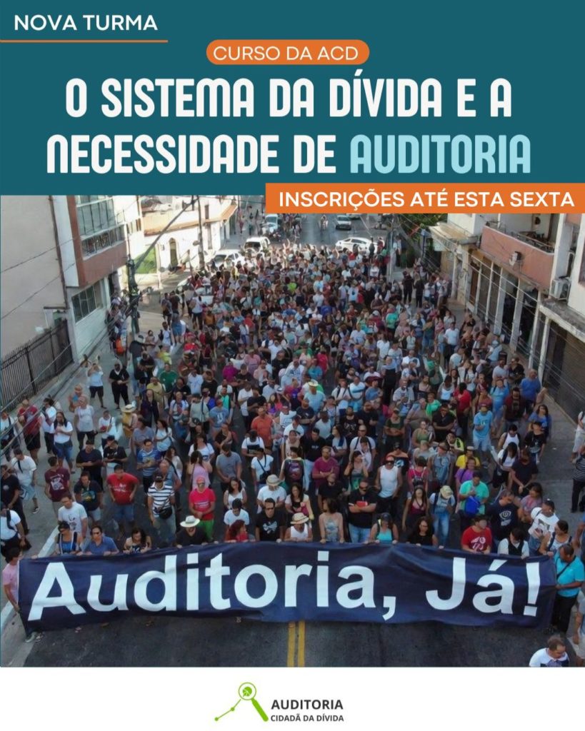 Inscrições até amanhã (13/03) – Esta é a última chamada para que você garanta sua vaga no curso “O Sistema da Dívida no Brasil e a Necessidade de Auditoria Integral”. 🌟 Com ele, você poderá aprofundar seus conhecimentos e contribuir com a mobilização social em defesa da transparência e da justiça.
