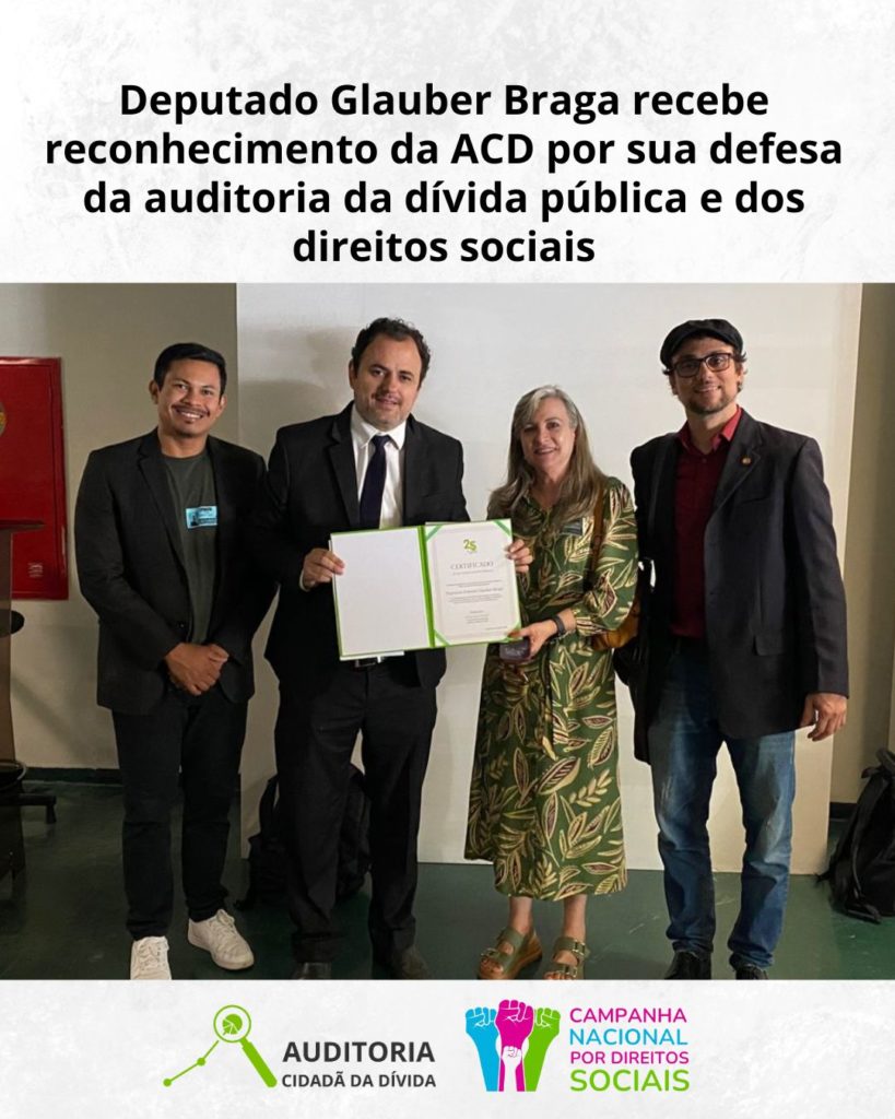 Deputado Glauber Braga recebe reconhecimento da ACD por sua defesa da auditoria da dívida pública e dos direitos sociais