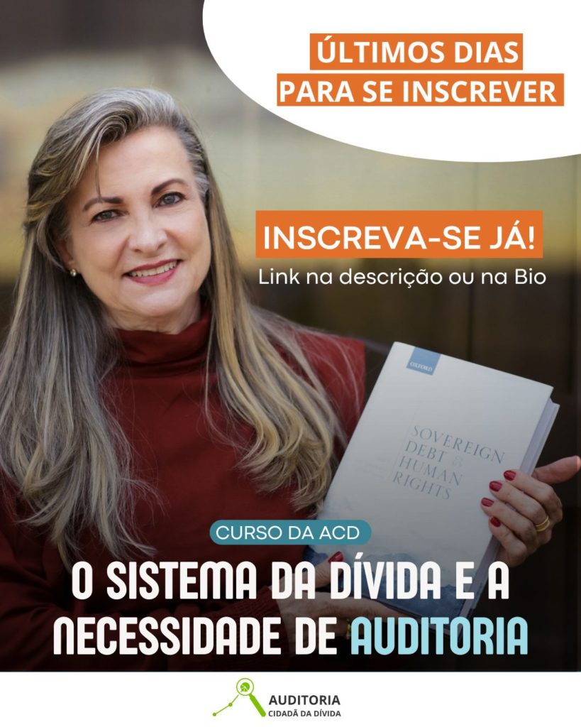 Por isso a ACD desenvolveu o curso “O Sistema da Dívida no Brasil e a Necessidade de Auditoria Integral”, da Auditoria Cidadã da Dívida, que está com inscrições abertas até esta sexta-feira (28). Veja porque você precisa participar!