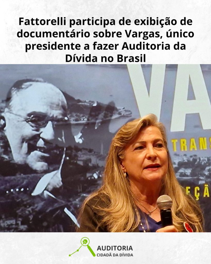 Fattorelli participa de exibição de documentário sobre Vargas, único presidente a fazer Auditoria da Dívida no Brasil