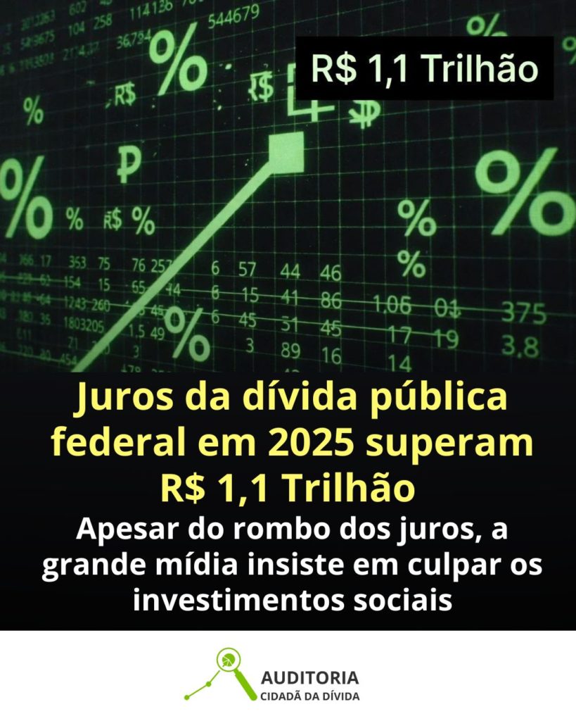 A grande mídia adota o discurso de que no Brasil os juros seriam altos pois o governo estaria tomando mais empréstimos para abastecer as áreas sociais (especialmente o pagamento do funcionalismo e benefícios previdenciários), o que estaria gerando o “déficit público”, aumentando a dívida e assim levando o “mercado” a exigir taxas de juros maiores. Porém, ao analisarmos os dados do orçamento do ano passado, vemos que a dívida pública continua RETIRANDO, e não colocando recursos nas áreas sociais. Em 2025, foram gastos com juros e amortizações da dívida pública federal nada menos que R$ 242 bilhões provenientes de receitas que nada têm a ver com a emissão de novos títulos da dívida, enquanto somente R$ 140 bilhões de novos empréstimos foram destinados para as áreas sociais. Portanto, vemos que, em termos líquidos, a dívida pública RETIROU R$ 102 BILHÕES das áreas sociais no ano passado. Isso desconsiderando os vultosos valores que também foram destinados para juros e amortizações com recursos provenientes de novas dívidas, que também devem ser considerados, pois poderiam e deveriam estar sendo destinados para investimentos sociais.