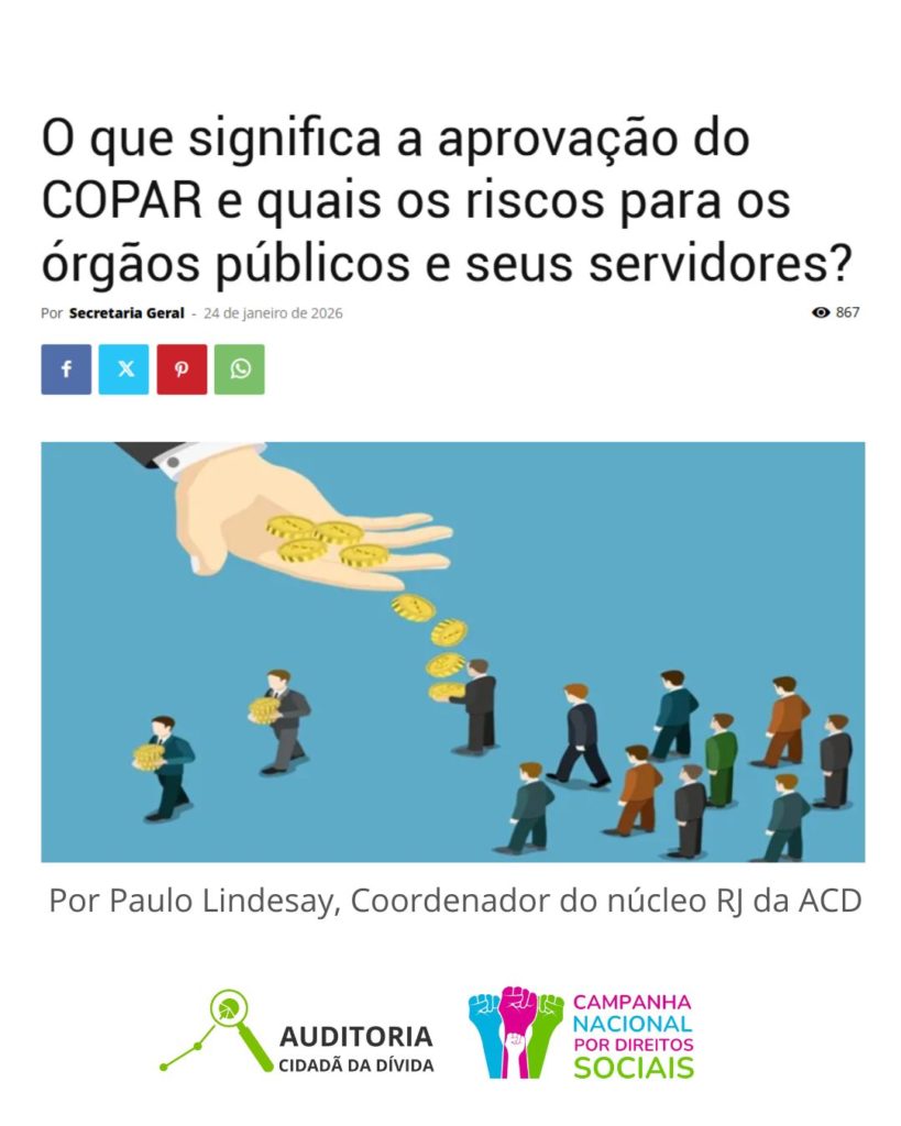 Em artigo publicado no site do ASMETRO – SI, o coordenador do núcleo RJ da ACD, Paulo Lindesay, fala sobre a possibilidade da aprovação do Conselho de Política de Administração e Remuneração de Pessoal (COPAR) e seus impactos na gestão pública. Segundo o autor, a entidade seria encarregada de organizar e determinar a gestão pública de forma abrangente, englobando questões como progressão salarial, estrutura das tabelas salariais, percentuais de reajuste, número de cargos efetivos e outras atribuições.