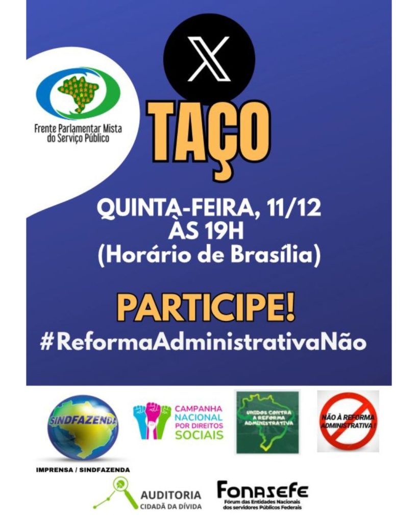 Participe do X-Taço contra a Reforma Administrativa nesta quinta (11)