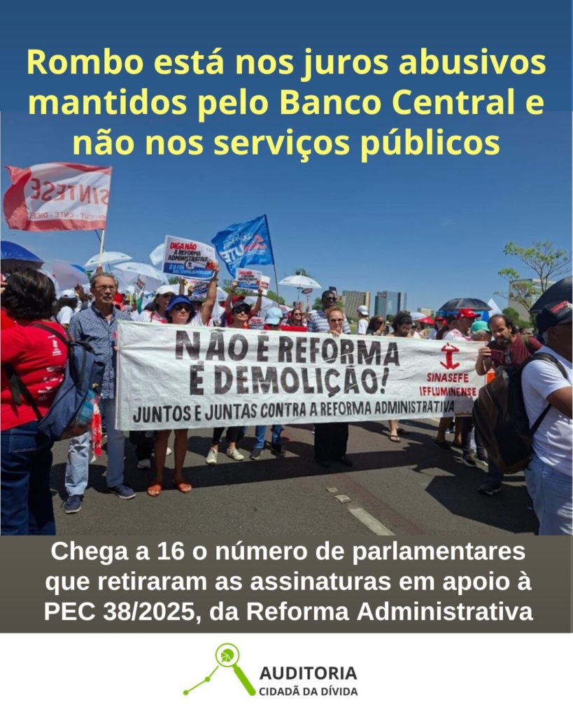 A sociedade já está cada vez mais consciente de que é mentiroso o discurso de que o rombo das contas públicas estaria no funcionalismo. Também nessa quarta-feira, 5/11, mais 3 parlamentares retiraram as suas assinaturas em apoio à Proposta de Emenda à Constituição da chamada Reforma Administrativa, totalizando 16 retiradas. A grande Marcha do dia 29/10 mostrou sua força, mostrando para a sociedade que não se trata de reforma, mas de demolição dos serviços públicos que atendem toda a sociedade.  Por isso é preciso manter a mobilização.