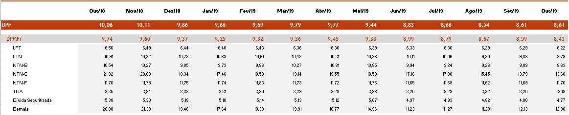 Taxas de remuneração dos títulos da Dívida (out 2018-out 2019)