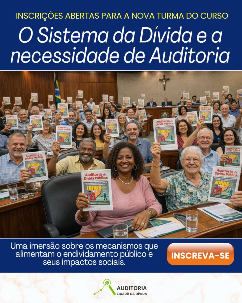 Vem com a gente fazer parte desta luta! A Auditoria Cidadã da Dívida abriu nova turma do curso “O Sistema da Dívida no Brasil e a necessidade de Auditoria Integral”.