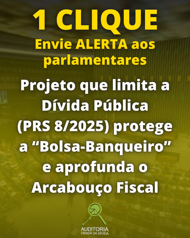O Projeto de Resolução do Senado (PRS 8/2025) — uma proposta que, sob o argumento de limitar a dívida pública, protege os grandes rentistas, aprofunda o Arcabouço Fiscal e perpetua a chamada “Bolsa Banqueiro”. O projeto livra da limitação os títulos públicos doados pelo Tesouro Nacional ao Banco Central, que custam centenas de bilhões de reais por ano e impedem a redução das taxas de juros. Essa manobra beneficia o sistema financeiro e retira recursos essenciais de áreas como saúde, educação e investimentos sociais. Além de esconder parte ilegítima da dívida, o PRS 8/2025 reforça os cortes e restrições fiscais que penalizam o funcionalismo público e toda a sociedade.
