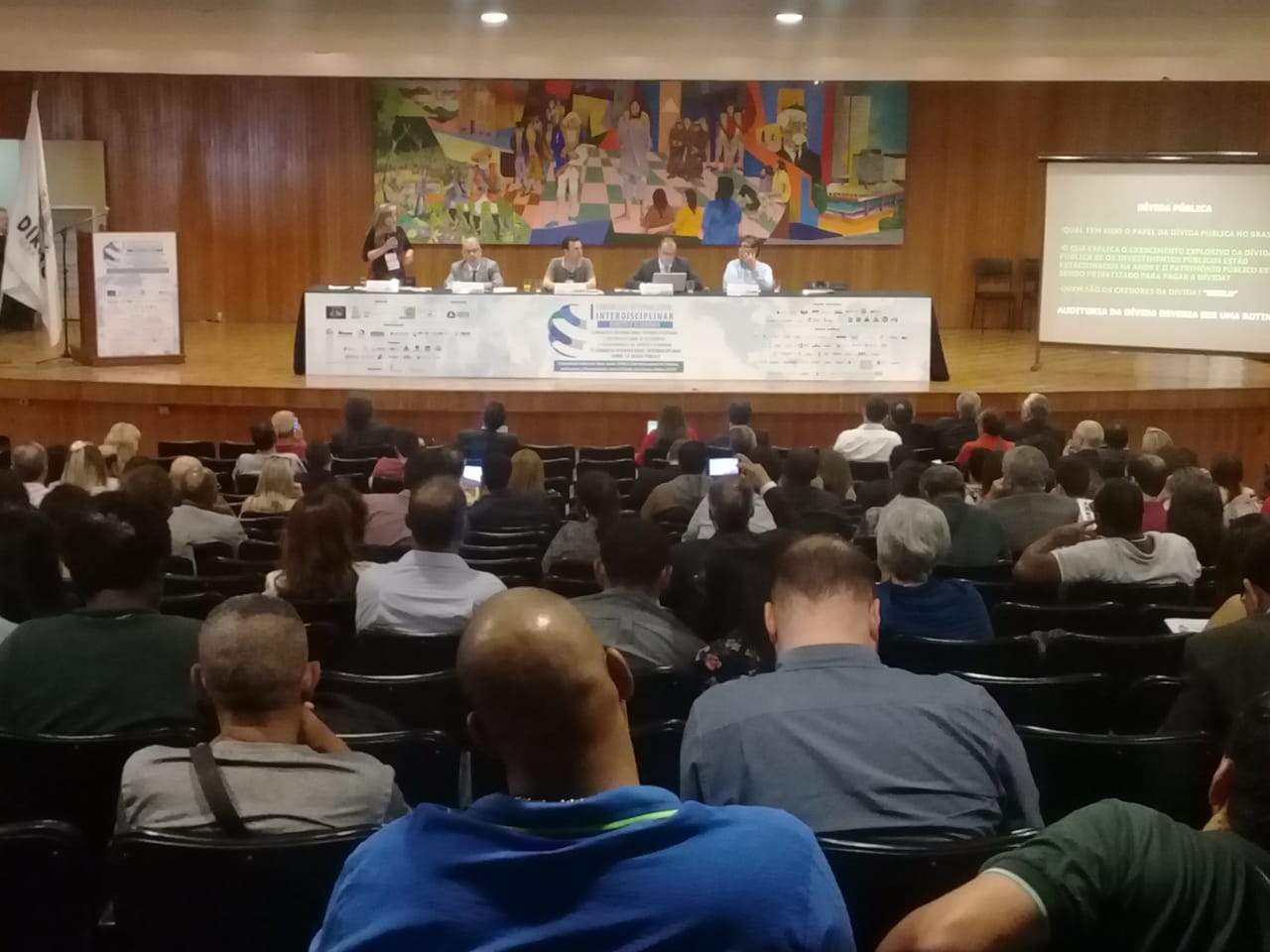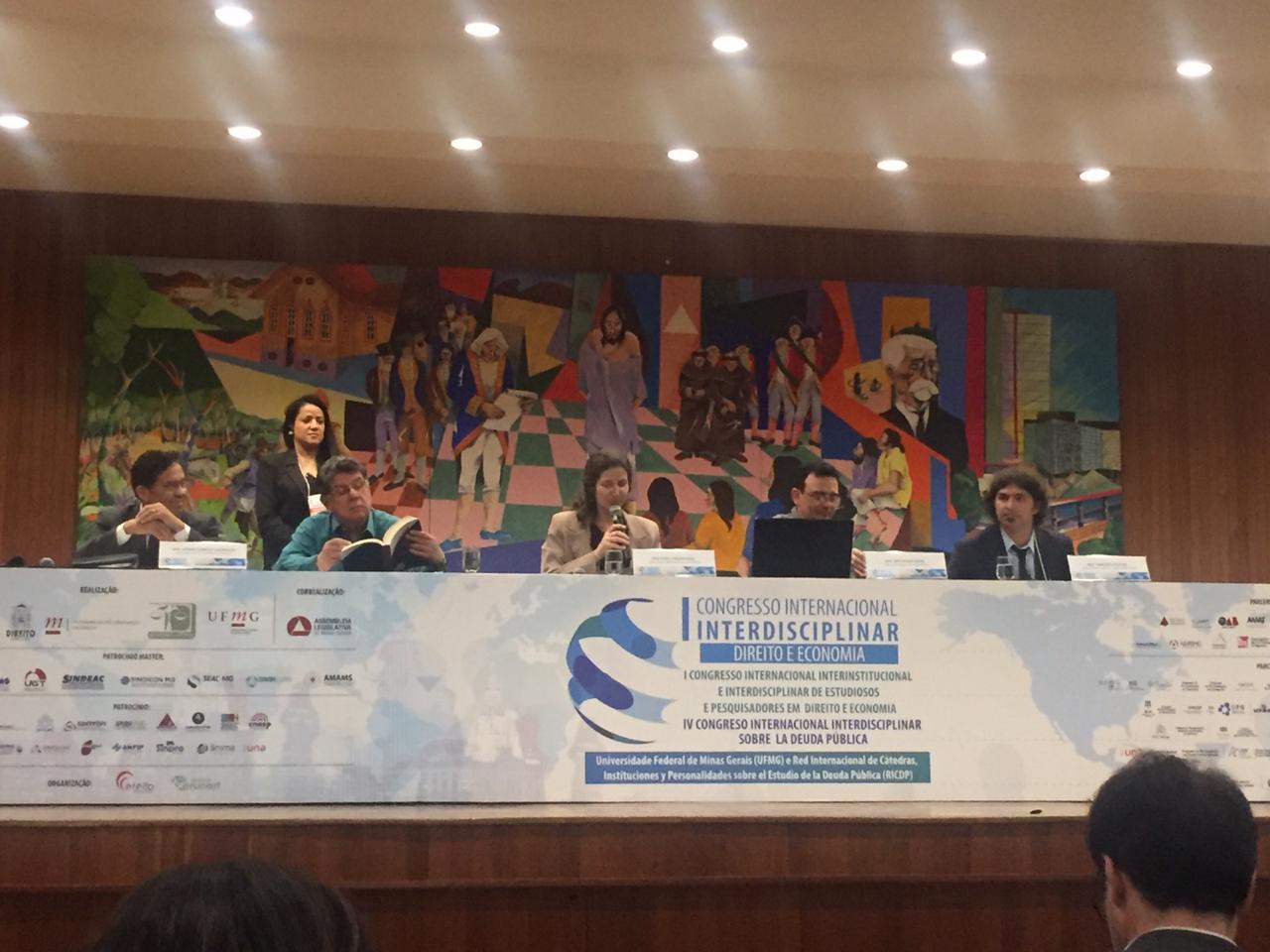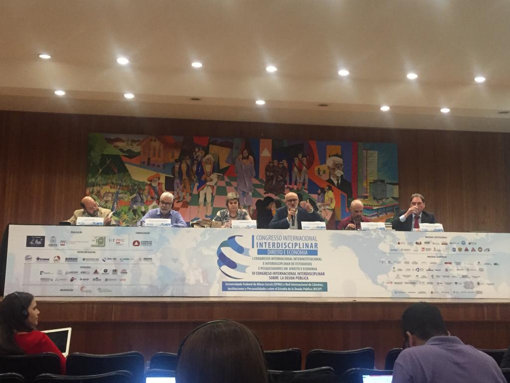 Maria Lucia Fattorelli palestrou, nessa quinta-feira (5), no “III Painel – Dimensão histórica, econômica, política e social do endividamento público. O sistema da dívida” e a desconstrução das instituições de proteção social: austeridade fiscal, reforma da previdência, privatizações e política monetária. Auditoria da dívida pública brasileira (Art. 26, ADCT, CR/88)”, mesa do I Congresso Internacional Interdisciplinar: Direito e Economia, realizado na UFMG junto ao IV Congreso Internacional Interdisciplinar de la Red Internacional de Cátedras, Instituiciones y Personalidades sobre el Estudio de la Deuda Pública (IV CI-RICDP).