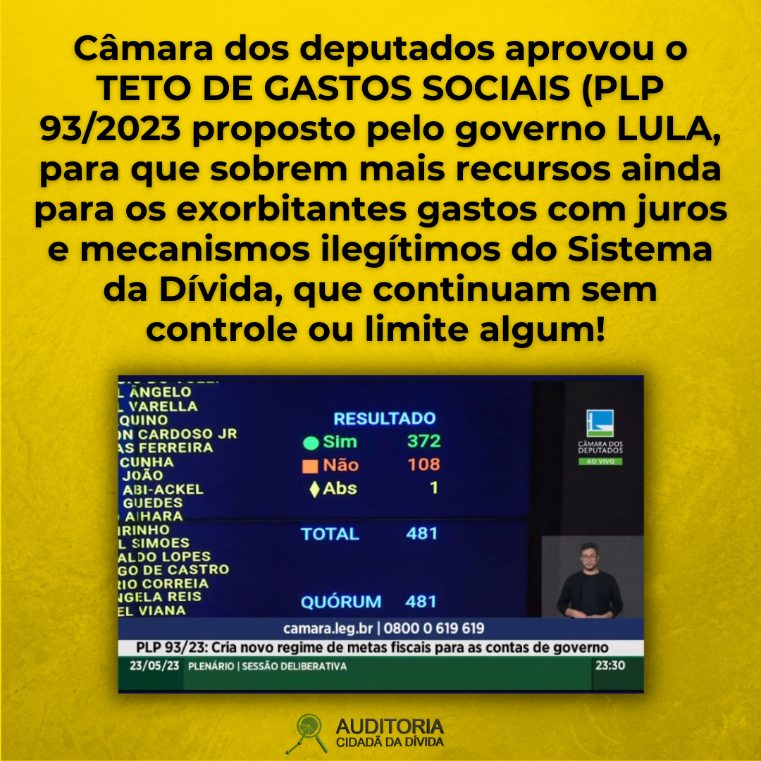 Lamentável! Câmara dos deputados aprovou o TETO DE GASTOS SOCIAIS (PLP 93/2023 proposto pelo governo LULA.