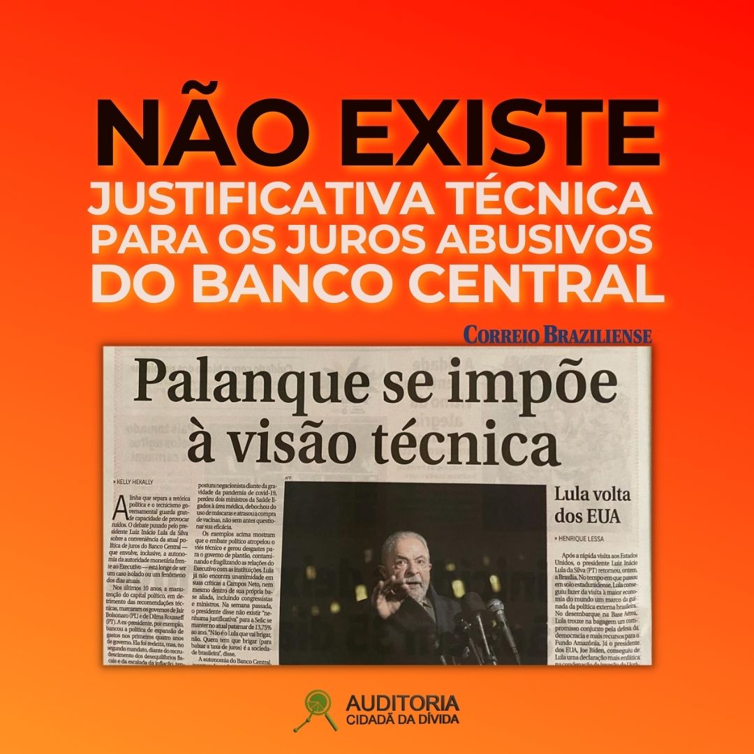 Como mostra a manchete no jornal Correio Braziliense, a mídia já está tentando classificar o embate entre o presidente Lula e o Banco Central (BC) como uma jogada política para ganhar palanque, desconsiderando como os juros altos são nocivos para a economia do Brasil. Na live da ACD desta segunda-feira, às 19h, vamos mostrar como há tempos a ACD vem denunciando que não existe justificativa técnica para a alta da taxa básica de juros (Selic) pelo BC, taxa essa que quando elevada afeta todas as demais taxas no país.