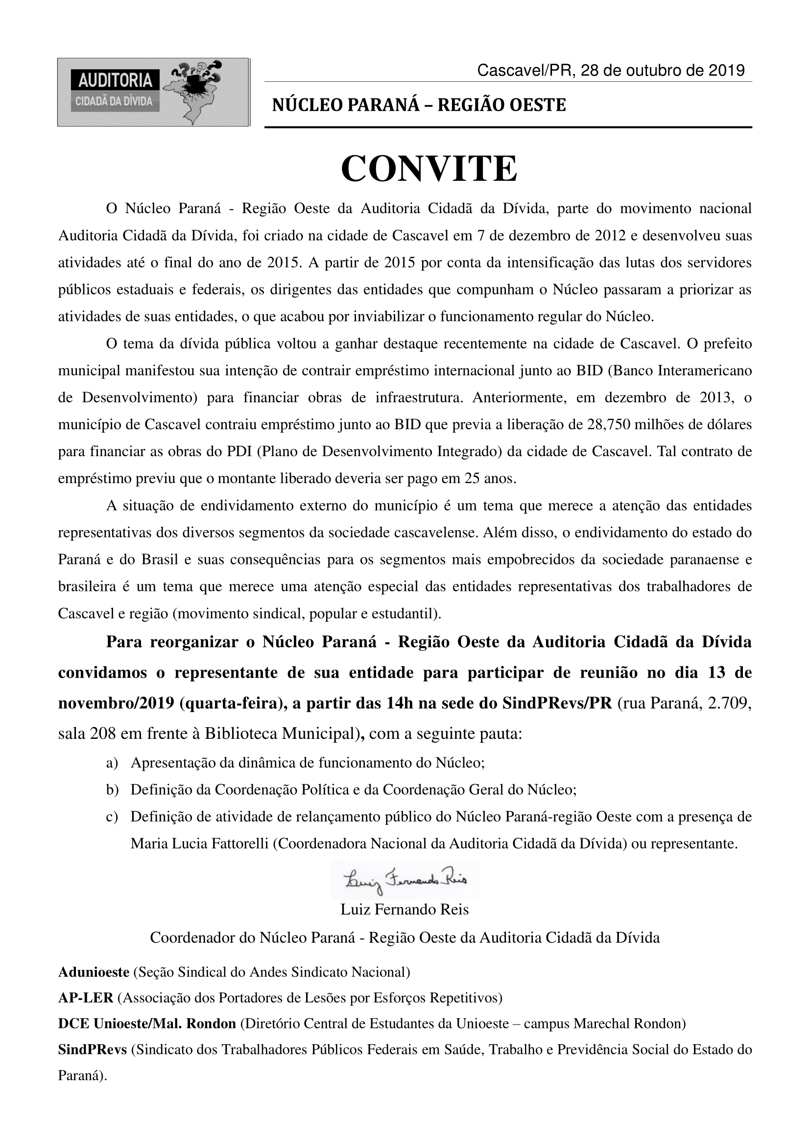 É com alegria que anunciamos a reativação do Núcleo Paraná – Cascavel da Auditoria Cidadã da Dívida.