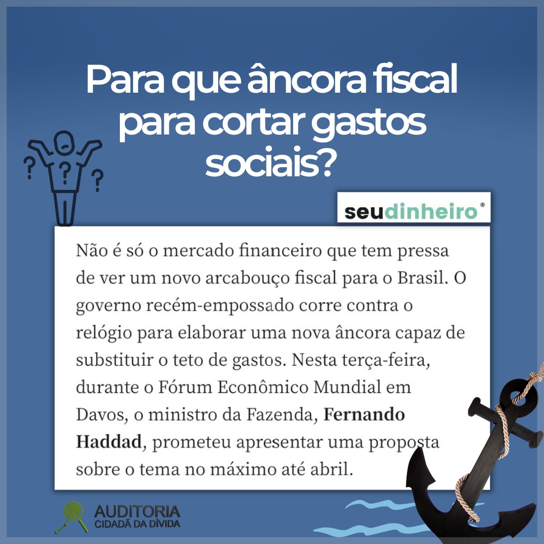 “Por que precisamos de “âncora fiscal” para cortar gastos sociais? Já deu errado no Chile e em países europeus que caíram no conto do FMI! Países que têm tido desenvolvimento socioeconômico não se submetem assim. Ainda mais que aqui o rombo está nos juros e mecanismos do Sistema da Dívida”, disse a coordenadora nacional da Auditoria Cidadã da Dívida, Maria Lucia Fattorelli.