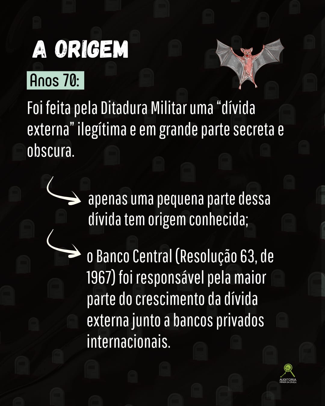 Quando falamos da Dívida Pública (atualmente a maior parte é “interna”, federal), temos que atentar para o fato de que a sua origem é, no mínimo, questionável e precisa ser investigada por meio da auditoria: